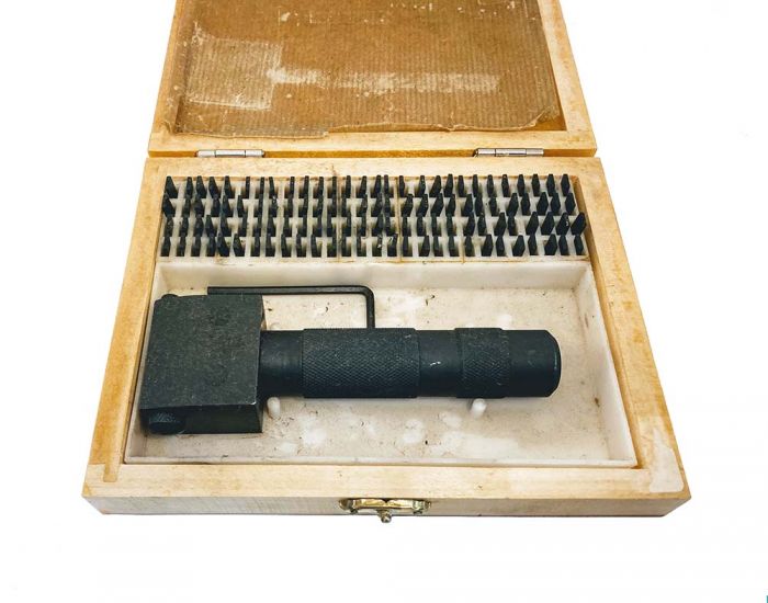 Each kit is packed in a case and contains: Type Holder with a complete selection of letters, number, dash, slash amok, period, comma, ampersand and spacers.