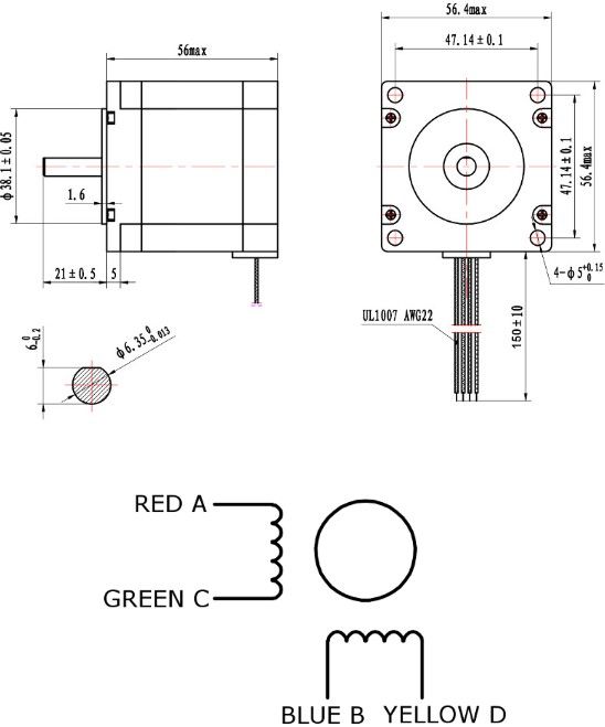 57 Series Stepper Motor - 56mm Length, 6.35mm Shaft (Nema 23)