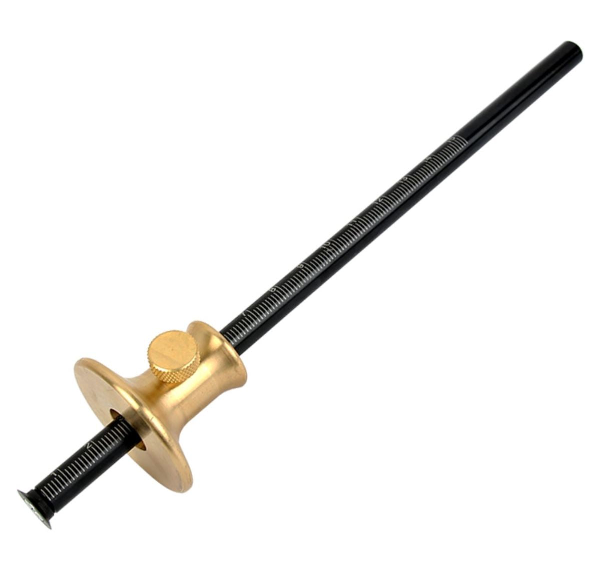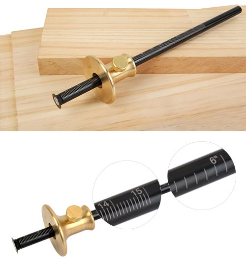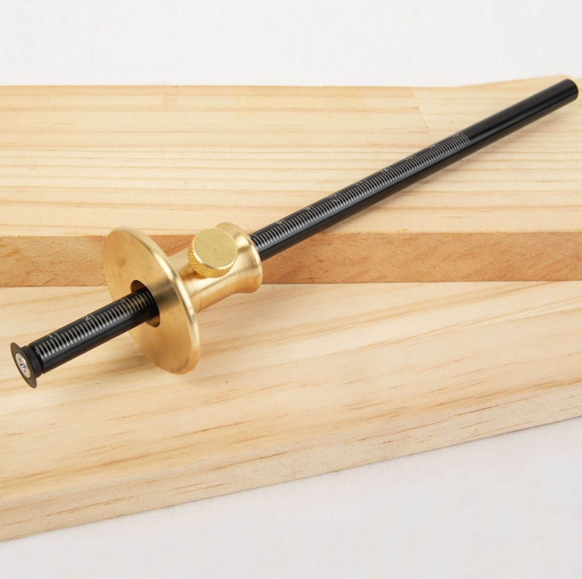 This 200mm marking gauge combines a robust brass body with an iron shaft and both imperial and metric 0-150mm scale for precise layout work. The hardened, replaceable cutter delivers sharp, accurate lines while minimizing grain tear-out.