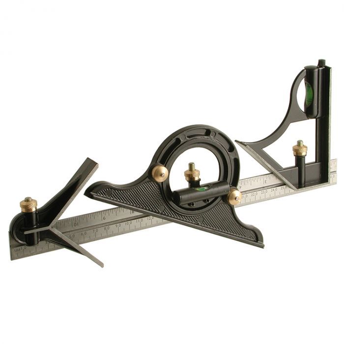 A versatile four-in-one measuring tool designed for precision work. This Combination Square Set features a Try square, Centre head, Angle finder, and 300mm aluminium rule—everything you need for accurate layouts and measurements.