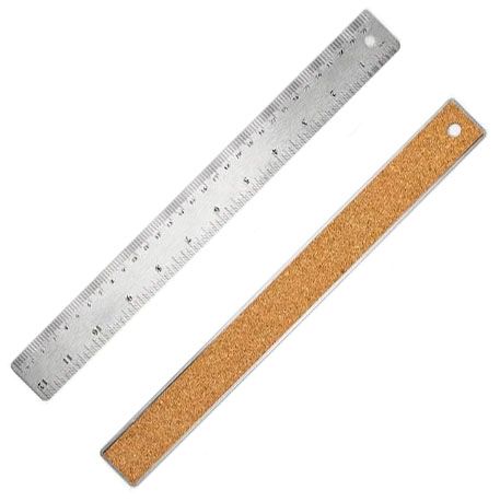 This stainless steel ruler has a cork back to allow it to be flexible. Comes in both metric and imperial measurement up to 300mm/12".