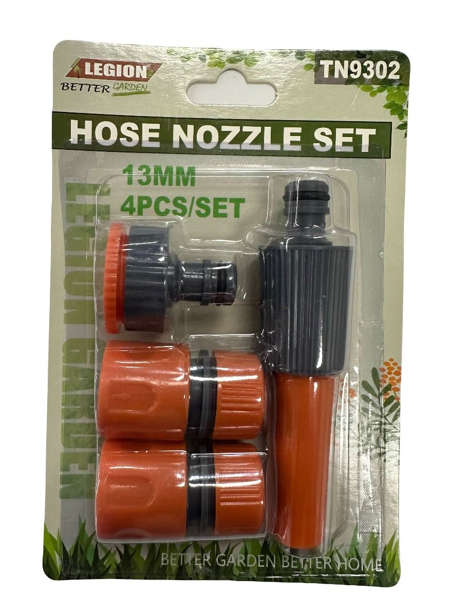 4 PIECE 13mm Hose Nozzle Set contains all you need to start watering with your hose easily and quikly.