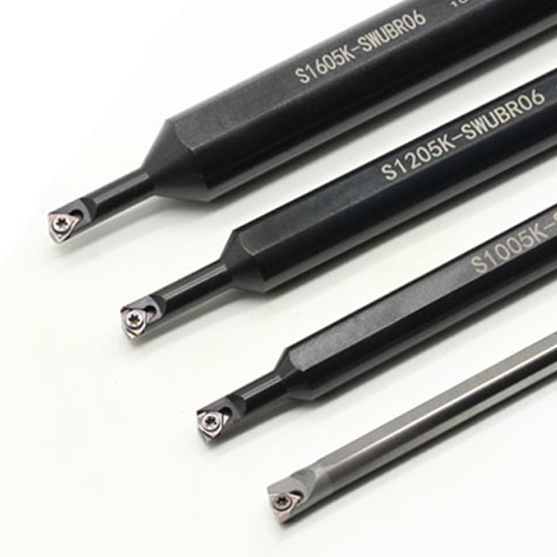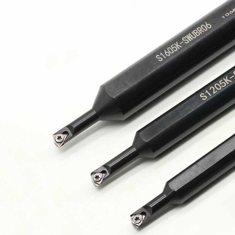 These alloy boring bars are designed for internal turning small holes. With a small neck for reaching into deep areas, all holders use the same WBMT060102 carbide tip.