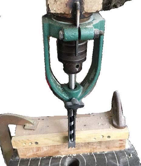Mortising chisel attachment suitable for use on any drill press. Select Optional rings to fit your drill press column.
