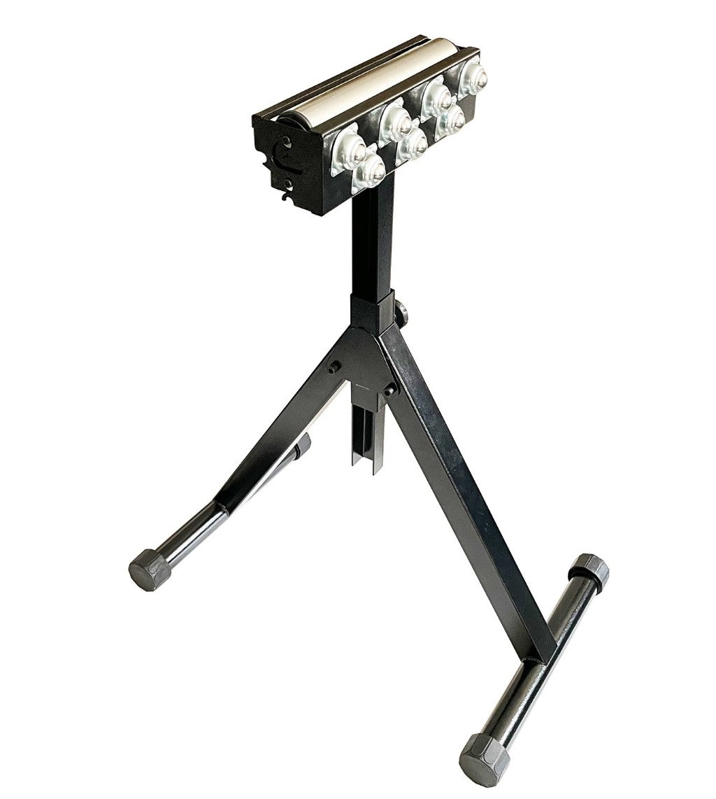 The roller height can be adjusted in between 730 - 1050mm via the 2 locking knobs. The stand feet are independently adjustable to accommodate uneven floors. Maximum