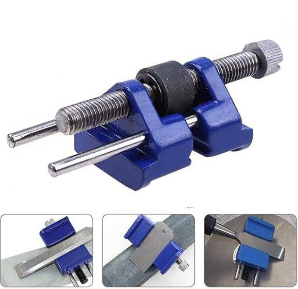 Precision honing made simple. This durable metal guide maintains consistent sharpening angles for chisels, plane blades, and woodworking tools from 38mm to 65mm wide. Built with hardened steel rollers and corrosion-resistant construction, it works seamlessly on whetstones, oilstones, sandpaper, and diamond stones. Adjustable settings deliver precise angles—50mm projection yields 25 degrees, 38mm yields 30 degrees—ensuring professional results every time. Ideal for carpenters and woodworking enthusiasts seeking reliable edge maintenance.Sharpening / Honing Guide