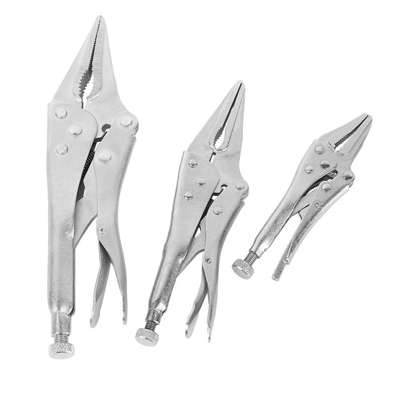 These Welding Clamp Locking Pliers are for metal sheets and feature a long head with a locking mechanism.
