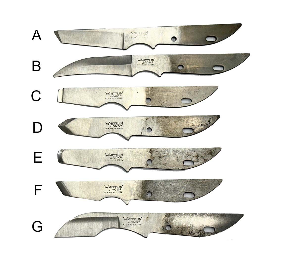 These Whittling blade blanks are made of stainless steel for retaining a sharp edge.